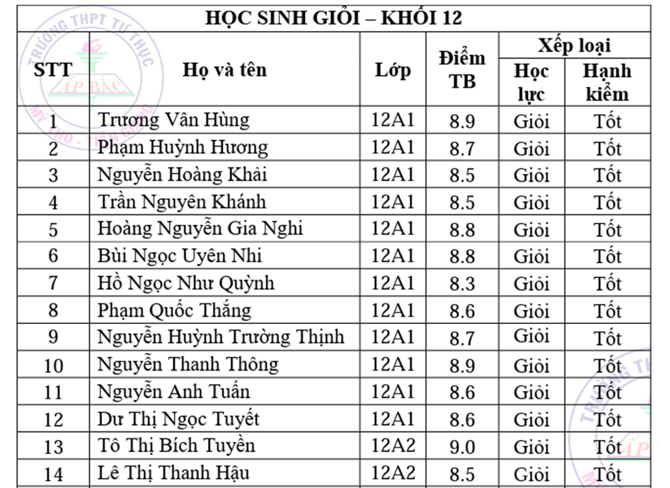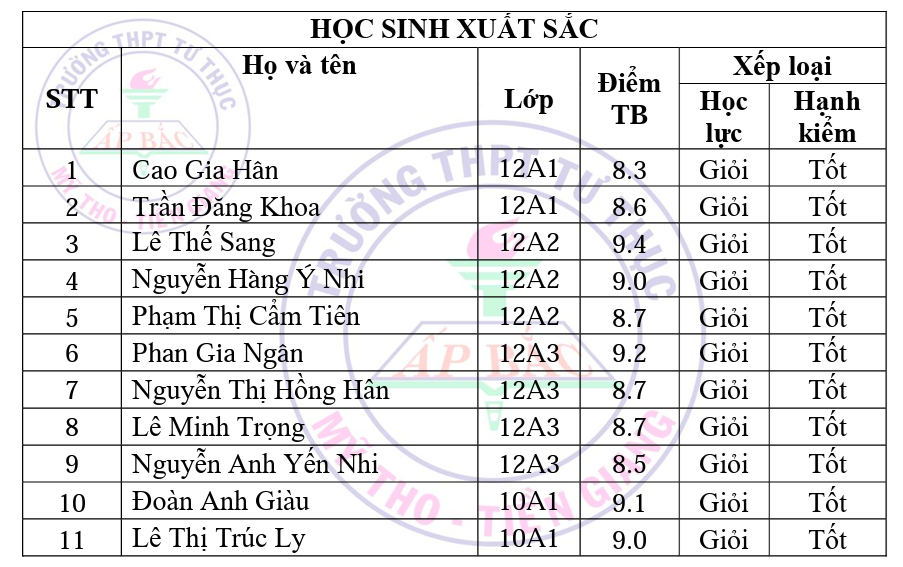 Chúc mừng tất cả các em học sinh trường THPT Tư Thục Ấp Bắc.
